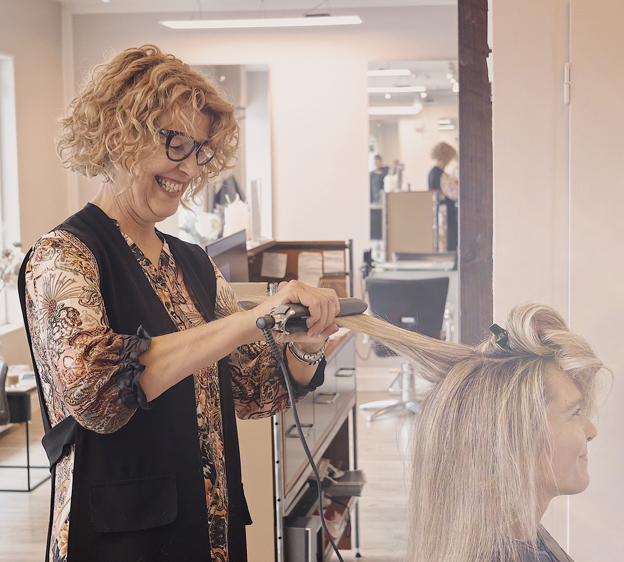 Jeg har mange års erfaring som frisør og brænder for mit fag. For mig er det vigtigt altid at være opdateret på de nyeste teknikker og trends, og jeg tager derfor jævnligt på kurser for at udvikle mig og hente ny inspiration.